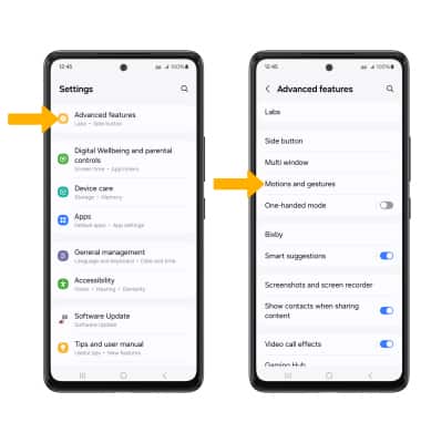 2. Scroll to and select Advanced features, then select Motions and gestures.