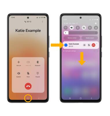 While on an active call, select the Home key to access the home screen. To return to an active call, swipe down from Notification bar, then select the Active call.