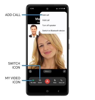 • SWITCH TO A VIDEO CALL: From a voice call, select the Video call icon.