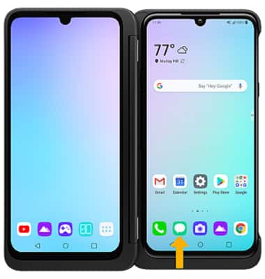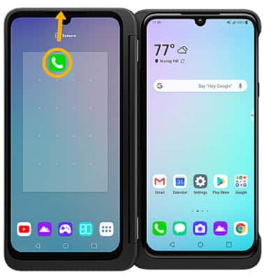 1. When you plug your device into the LG Dual Screen case, the Dual Screen Tool icon will automatically appear on the main screen. To turn on Dual Screen, select the Dual Screen Power icon.