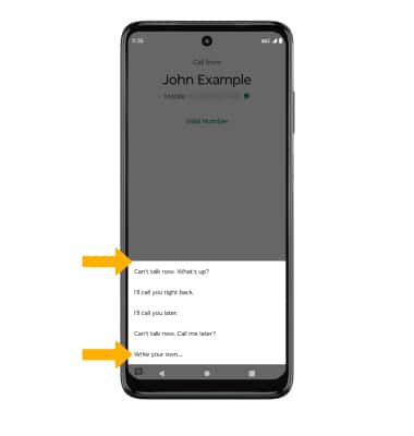 Message icon up to decline the call and send a text message. Select the desired text message to send, or select Write your own... to write your own.
