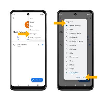 Menu icon then select Set ringtone. Select the desired ringtone, then select OK.