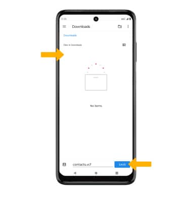 2. Navigate to the desired storage location, then select SAVE. Your contacts will be exported.
