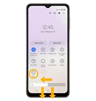 To enable NFC, swipe down from the Notification bar with two fingers. Swipe left, then select the NFC icon.