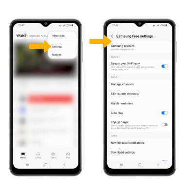 Menu icon at the top of the Samsung Free screen, then select Settings. Edit settings as desired.