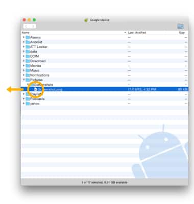 4. Once the phone is connected to the computer, the Android File Transfer app will open automatically. Select the desired folder to transfer files to/from.