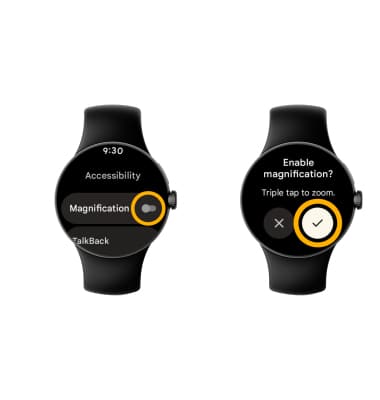 Note: To use magnification, triple tap the watch screen to zoom in on the screen.
