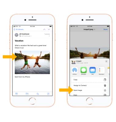 Note: Alternately, select and hold the desired attachment then select Save Image or Share as desired. Attachments are saved according to their file type. To view saved photos and videos, from the home screen select the