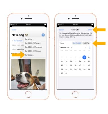 Send icon then select Send Later... Edit the desired time and date, then select Done.