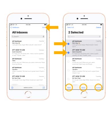 From the desired inbox, select Edit. Select the desired message(s), then select the desired action.