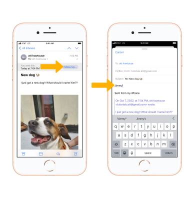 iOS16 introduces the ability to follow up an email. After sending an email, the Mail app will automatically detect whether a question is present in the email. The email will appear at the top of your inbox with a prompt to FOLLOW UP. Select FOLLOW UP.