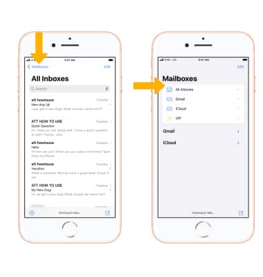 If you are already in an inbox, select the Mailbox name in the upper left corner of the screen to get to the Mailboxes screen. Select the desired Inbox.