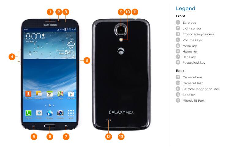 Get familiar with the hardware of your Samsung Galaxy Mega (I527)