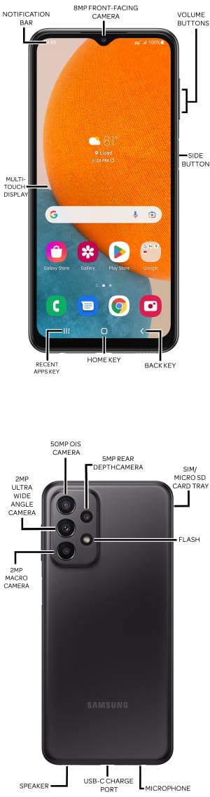 Get familiar with the hardware of your Samsung Galaxy A23 5G (SM-A236U)