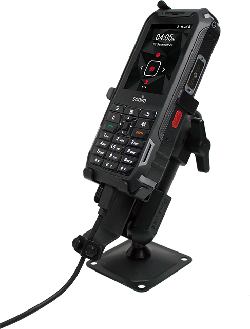 La base para vehículo y montaje Sonim, de PanaVise, se fabrica en USA con aleación de metal resistente, diseñado para cumplir con los estándares de rendimiento ultrarresistente de Sonim XP5s. La base y montaje ultraconfiables se ajustan en múltiples posiciones e incluye un organizador de cables incorporado para los cables de carga. Es una solución para vehículos económica, confiable y segura que es compatible con la función manos libres.