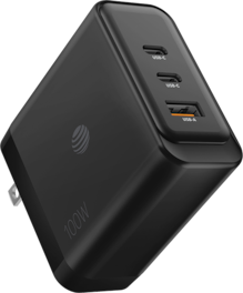 Cargador de pared GaN multipuerto AT&T Essentials de 100W (2 USBC + 1 USBA)