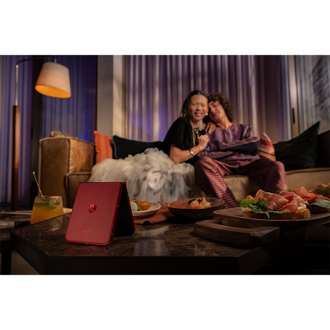 Presentamos el nuevo motorola razr ultra. Ultracompacto y exquisitamente fabricado, con acabados distintivos en colores PANTONE seleccionados. PANTONE Rio Red es una declaración de confianza, energía y expresión audaz; además, su sofisticada textura inspirada en el cuero crea una experiencia táctil que optimiza su estilo. Y PANTONE Scarab, un tono inspirado en la frondosidad del bosque, se combina con Alcantara®, un lujoso material 100% hecho en Italia, que es suave al tacto, cómodo de sostener y fácil de agarrar.