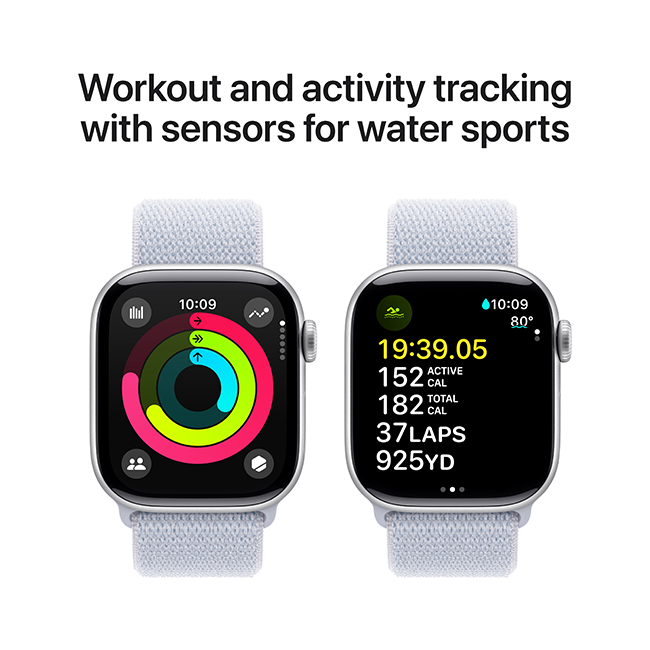 5Apple Watch Series 10 tiene una clasificación resistente al agua de 50 metros según las normas ISO 22810:2010. Por lo tanto se puede usar para actividades poco profundas como nadar en una piscina o el océano. El Apple Watch Series 10 no se puede usar para hacer buceo, esquí acuático ni otro tipo de actividades que se hagan a gran velocidad o a grandes profundidades en el agua. La resistencia al agua no es una condición permanente y puede disminuir con el tiempo. Para obtener más información, consulta support.apple.com/en-us/HT205000. El Apple Watch Series 10 tiene la clasificación IP6X de resistencia al polvo.