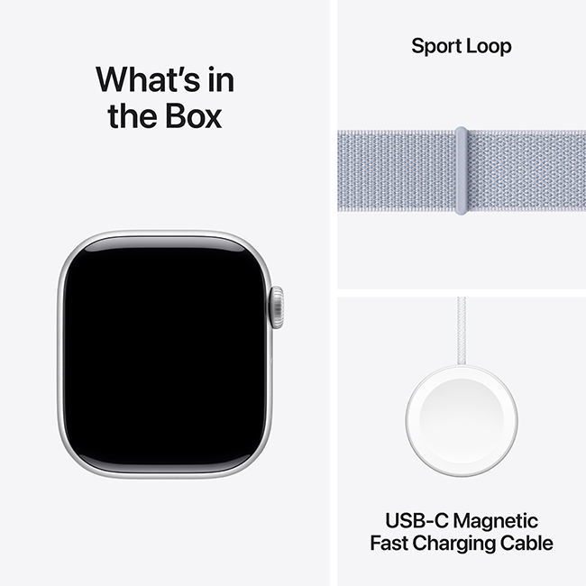 4Los tiempos de carga van de 0% a 80% y de 0% a 100% usando el cable de carga magnética rápida con conector USB-C incluido con el Apple Watch. Pruebas realizadas por Apple en agosto de 2024 con unidades Apple Watch Series 10 (GPS) y Apple Watch Series 10 (GPS + móvil) en preproducción, cada una enlazada con un iPhone. Todos los dispositivos fueron probados con versiones preliminares de software, cable de carga magnética rápida con conector USB-C para el Apple Watch (modelo A2515) y adaptador de corriente USB-C de 20 W de Apple (modelo A2305). La prueba de carga rápida se realizó con unidades Apple Watch descargadas. Los tiempos se midieron desde la aparición del logo de Apple al encender la unidad. El tiempo de carga varía según la región, la configuración y los factores ambientales; los resultados reales variarán.
