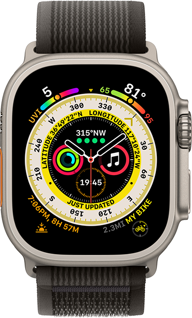 El Apple Watch más resistente y capaz, diseñado para explorar, disfrutar de aventuras y resistir. Con una caja de titanio de grado aeroespacial de 49 mm, batería de larga duración,1 aplicaciones especiales que funcionan con los sensores avanzados y un nuevo botón Acción personalizable.