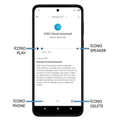 • ELIMINAR: selecciona el ícono Delete para eliminar un correo de voz.