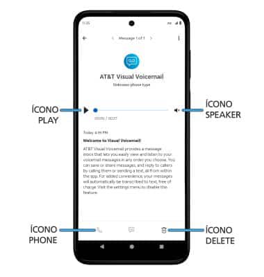 ELIMINAR: selecciona el ícono Delete para eliminar un correo de voz.