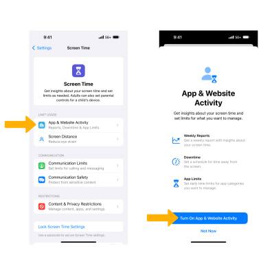 3. Selecciona App & Website Activity, luego selecciona Turn on App & Website Activity.