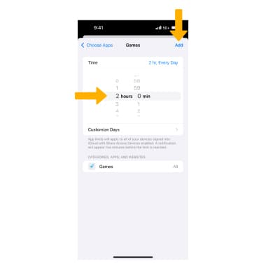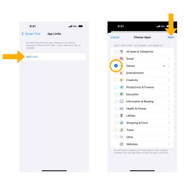 2. Selecciona Add Limit. Selecciona las categorías de aplicaciones que desees, luego selecciona Next.