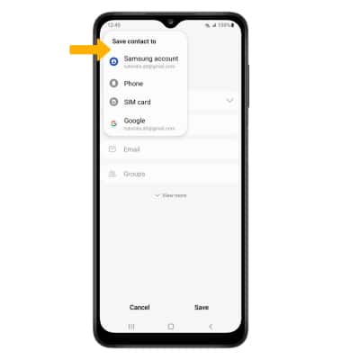 ícono Add, luego selecciona la ubicación para guardar contactos deseada.