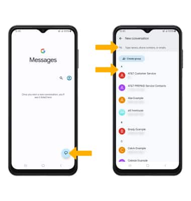 Importante: Para crear un mensaje grupal, selecciona Create group debajo del campo "To". Selecciona todos los contactos que desees. Cuando termines, selecciona Next para nombrar y crear el grupo.