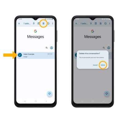 BORRA UNA SECUENCIA DE MENSAJES: en la pantalla Messaging, mantén oprimida la secuencia de mensajes que desees, luego selecciona el