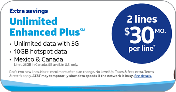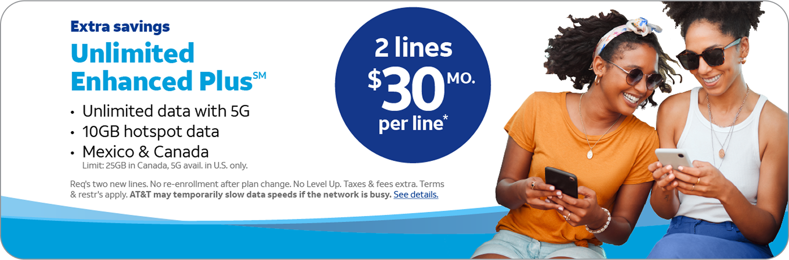 • Sign up for any single line monthly phone plan with a new AT&T Prepaid phone or your own.