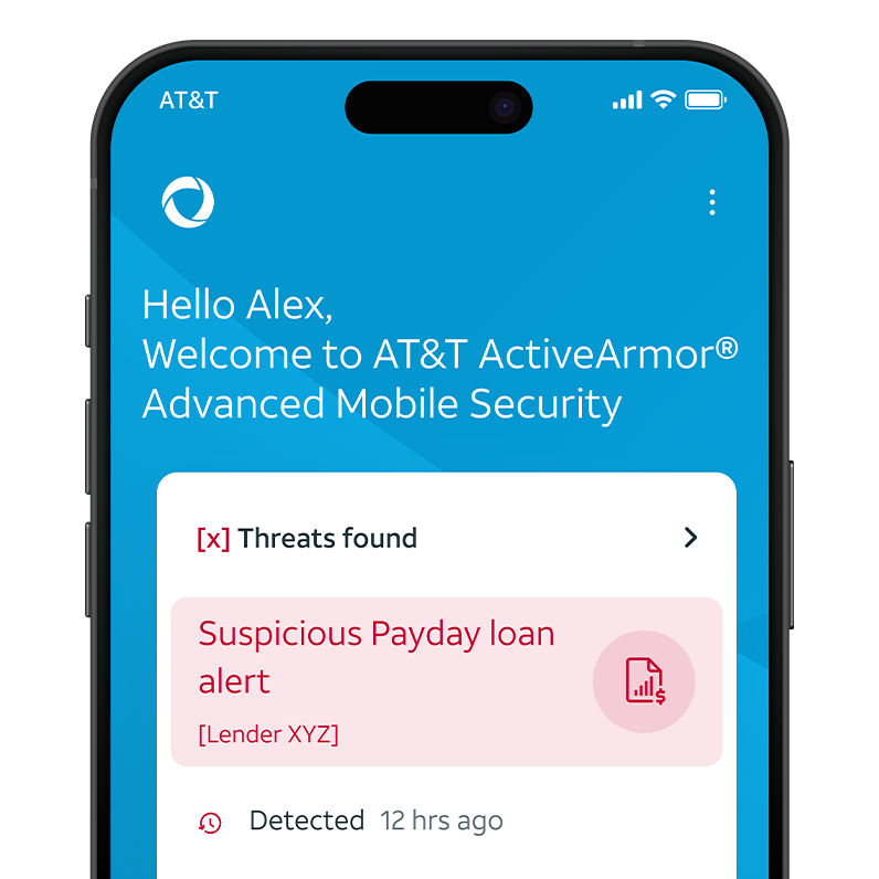 1Requires AT&T ActiveArmor advanced, $7/mo., subscription auto-renews and bills monthly unless canceled. 2Requires setup; does not guarantee complete security for your data. Automatically enabled when your device joins a public (unencrypted) Wi-Fi network, unless an alternate is active. Does not work while roaming internationally. 3May not detect all compromises or leaks of your personal data. 4Requires ActiveArmor notification activation. Benefit limited to 1 occurrence within any 12 consecutive month policy term. 5May not detect all suspicious websites. Requires ActiveArmor notification activation. 6May not detect all threats. Must be enabled via browser extension. Available on Google Chrome and Safari browsers on Android and iOS mobile devices only. Does not provide loan monitoring for traditional bank loans or mortgages. 7Does not provide loan monitoring for traditional bank loans or mortgages. Monitors credit activity only from Experian credit bureau. 8Monitors credit activity only from Experian credit bureau. 9Recovery services does not include loyalty/membership cards, monetary compensation, or other cash alternatives and services are not guaranteed.