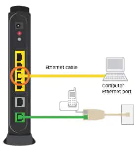 Your gateway will power up. Wait for the Power, Broadband, and Service lights to turn solid green and for the Ethernet light to blink green. Do not unplug the power adapter or data cable while the modem powers up. This can damage the gateway.
